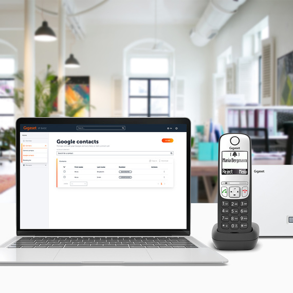 Широкие контакты хороши, а поддержание их еще лучше. В дополнение к местным телефонным книгам Gigaset HX, Gigaset A690A IP BASE имеет центральную телефонную книгу на 500 записей. Это впечатляющая емкость, которую можно увеличить за счет бесшовной интеграции с учетными записями Google и Microsoft 365: каждый из них можно использовать для хранения 1000 дополнительных контактов, которые считываются с соответствующей платформы каждые 15 минут. А что касается поддержания контактов? Благодаря нашему превосходному интернет-конфигуратору звонки можно начинать, нажимая на номер телефона и отвечая на них на телефоне. Таким образом, вы остаетесь гибкими.