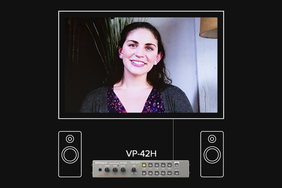 Roland VP-42H включает стерео выходы RCA для деэмбедирования звука с подключенных источников HDMI и вывода его на другие устройства, такие как динамики и микшеры. Уровни для каждого источника могут быть установлены внутренним аудиомикшером, и если VP-42H используется в качестве композитора для записи или потоковой передачи, звук с внешнего микшера или других источников можно подключить к входам RCA и встроить в Выходной сигнал HDMI.