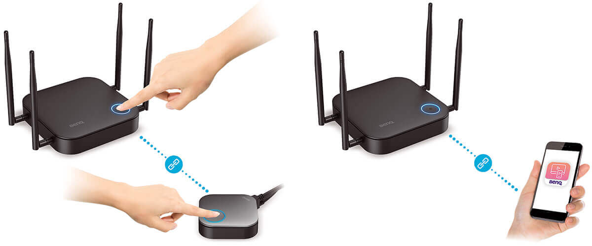 InstaShow™ WDC20 состоит из приемника и кнопки-передатчика. Комплект InstaShow™ WDC20 можно использовать "сразу из коробки". Чтобы установить связь между двумя этими устройствами просто удерживайте кнопку на приемнике в течение 5 секунд, затем сделайте то же самое на передатчике – все очень просто. Если приемник расположен в трудно доступном месте, настроить связь можно с помощью управления по сети или с мобильного устройства. Также, используя приложение InstaShare™, мобильные устройства смогут быстро и легко подключиться к приемнику.