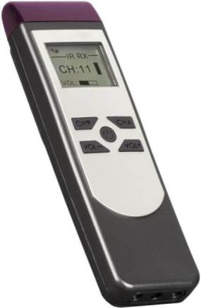 Оснащен ЖК-экраном, который отображает: выбранный канал, уровень сигнала, уровень громкости и состояния батареи. Позволяет работать с 12-ю языками. На корпусе присутствуют кнопка выбора канала, включение/выключение питания и 28-позиционный регулятор уровня громкости. Электропитание от 3-х аккумуляторов типа ААА (можно использовать зарядный кейс для ИК-приемников BLS-8206C) при этом может работать до 30 часов от полного заряда. Количество мест с использованием приемников не ограничено, сигнал может быть передан в пределах диапазона действия инфракрасного излучения.
