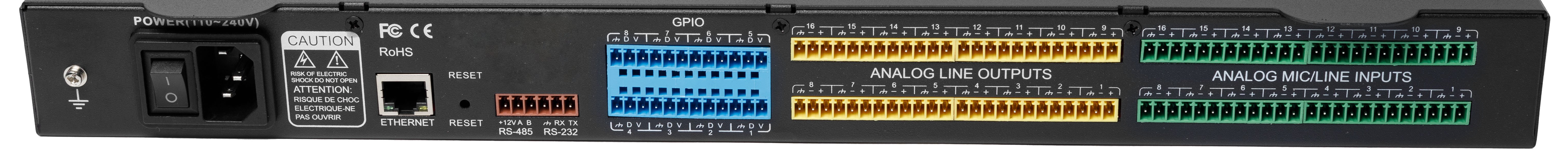 CleverMic 1616 представляет собой многофункциональный интеллектуальный аудиопроцессор, созданный для профессионального применения в конференц-залах, студиях звукозаписи и образовательных учреждениях. Устройство поддерживает до 16 аналоговых входов и выходов с возможностью подключения через съемные разъемы Phoenix, что обеспечивает исключительную гибкость интеграции в любую аудиосистему.