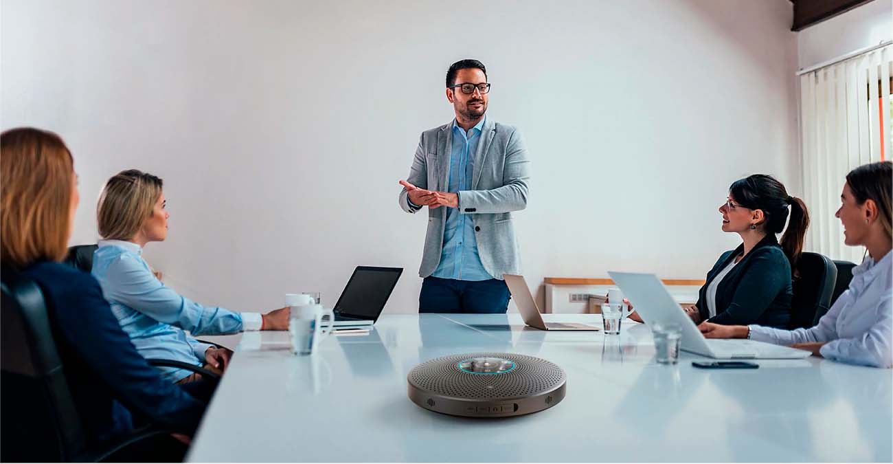Спикерфон SP40 легко подключается к компьютеру или ноутбуку через Bluetooth, AUX, Dongle или USB, используя технологию Plug and Play. Это позволяет начать использовать устройство всего за несколько секунд с любыми популярными приложениями для видеоконференций, такими как TrueConf, Skype, Google Hangout, Microsoft Skype for Business, Cisco Jabber, Avaya, FaceTime и другими.