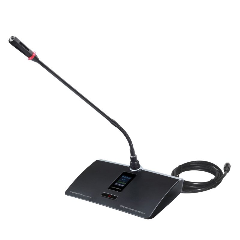 Конструктивные особенности и качество звука. Модель выполнена в эргономичном пластиковом корпусе и оснащена встроенным ЖК-дисплеем с разрешением 128x64 точки, на котором отображается актуальная информация о режиме работы системы. Высокочувствительный конденсаторный микрофон на гибкой ножке типа «гусиная шея» обеспечивает отличный захват звука, а интегрированная система подавления фоновых шумов и эха гарантирует превосходную разборчивость речи каждого делегата.