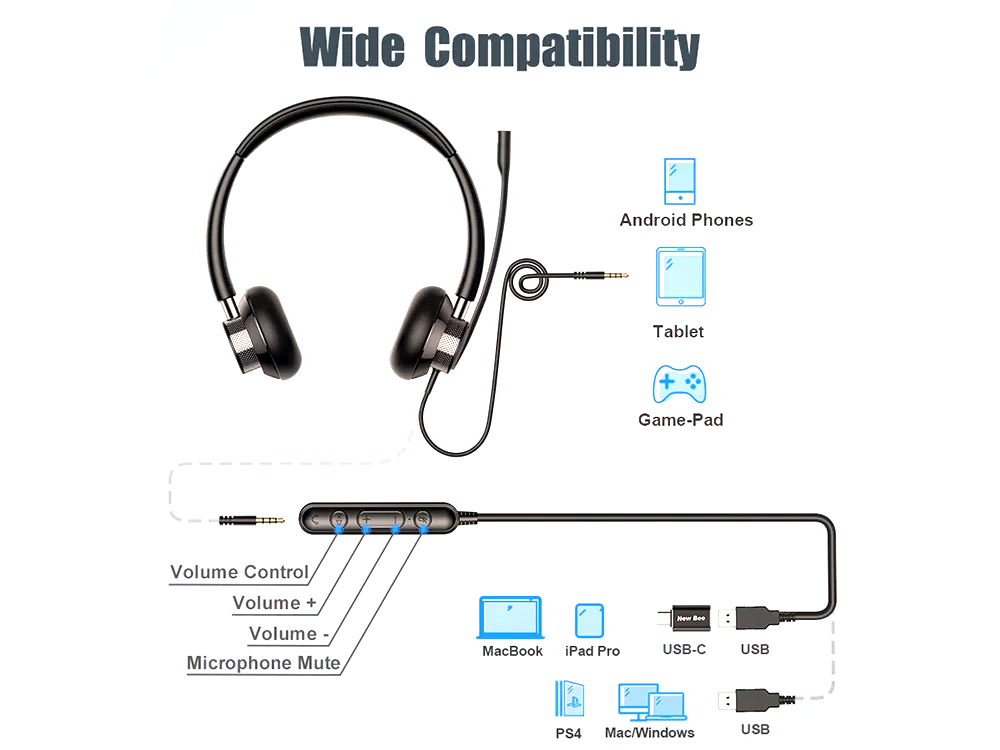 USB-гарнитура оснащена микрофоном с шумоподавлением, который эффективно фильтрует и уменьшает фоновый шум вокруг вас, обеспечивая чистый звук.