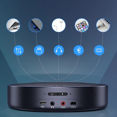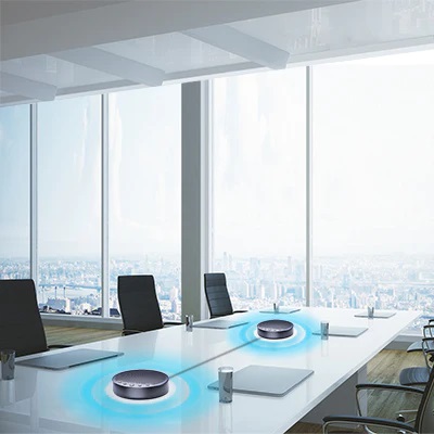 Встроенный 45 миллиметровый динамик оснащен функцией автоматического переключения между режимом конференции для кристально чистого человеческого голоса и музыкальным режимом для воспроизведения музыки с высокой точностью.