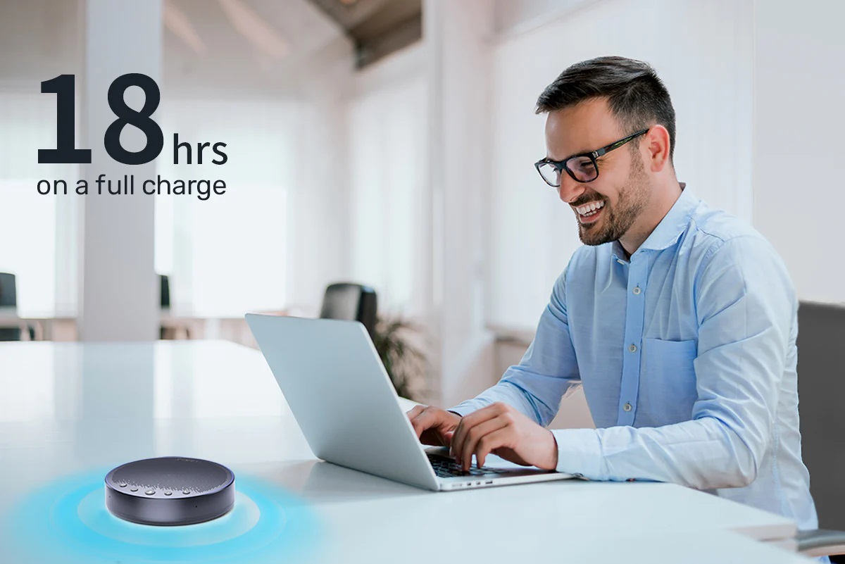 Аккумулятор большой емкости 5200 мАч и конструкция с низким энергопотреблением обеспечивают стабильную работу громкой связи в течение 18 часов, что позволяет избежать неожиданных перерывов во время встречи.