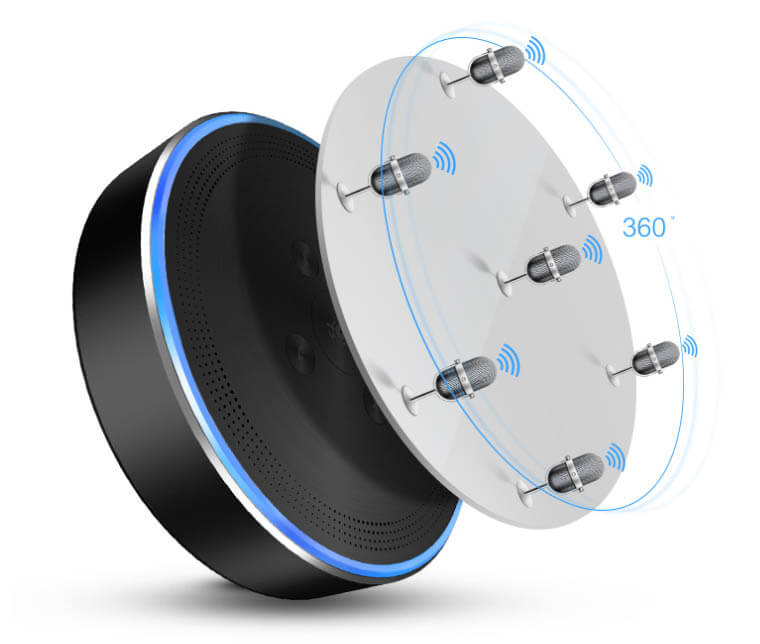 Массив из 7 микрофонов формирует специальные "звуковые лучи", при помощи которых определяется направление основного источника звука, а так же отсечение фоновых шумов. Благодаря применению технологии "звуковых лучей" Ваш голос будет передаваться громко и чисто, как при общении вживую.
