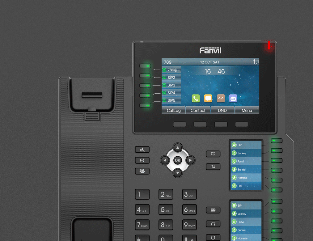 Благодаря интуитивному дизайну с 4.3-дюймовым цветным ЖК-дисплеем 480x272, двумя 2.4-дюймовыми цветными ЖК-дисплеями и 5 клавишами линии с подсветкой, Fanvil X6U обеспечивает более удобную настройку функций.