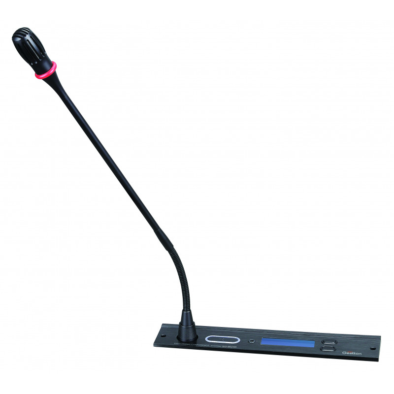 Передовые технологии звукопередачи. Одной из ключевых особенностей устройства является микрофон на гибкой ножке («гусиная шея») длиной 420 мм, обладающий гиперкардиоидной диаграммой направленности. Такая конструкция гарантирует максимальную изоляцию от посторонних шумов и эффективно предотвращает возникновение обратной акустической связи, обеспечивая идеальную чистоту речи каждого участника. Световое индикаторное кольцо красного цвета на микрофоне информирует делегата об активации системы.