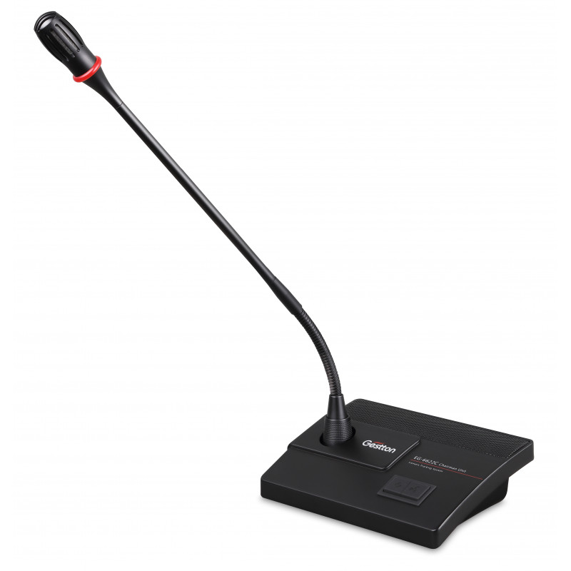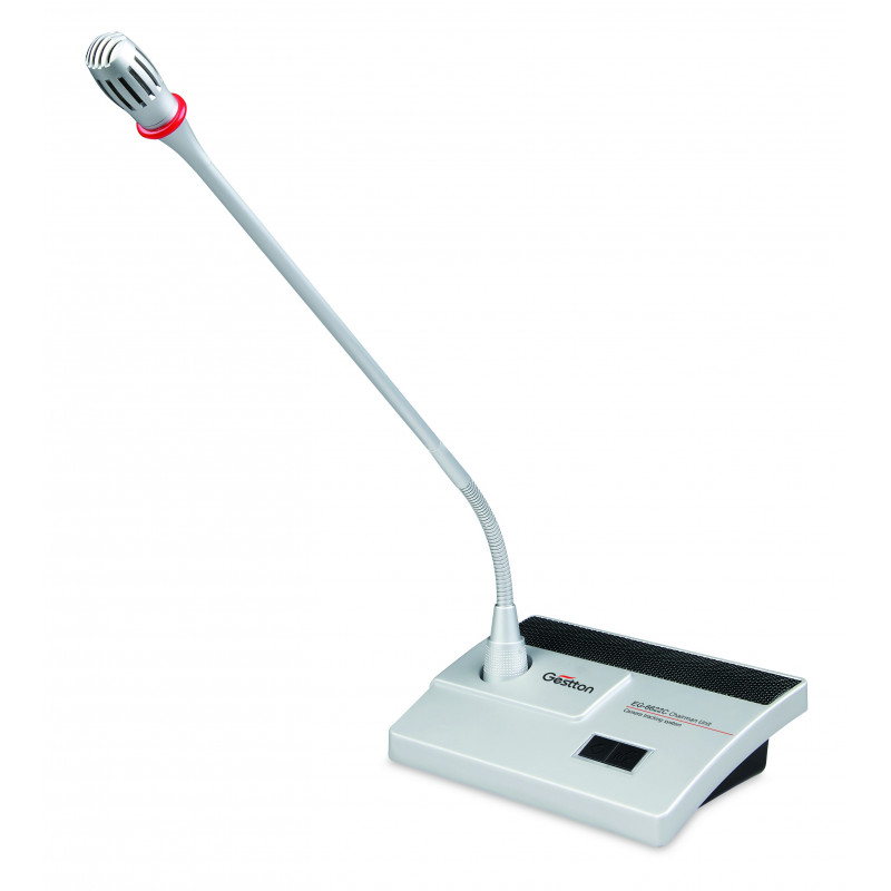 Профессиональный пульт для председателя. Модель Gestton EG-6622C представляет собой высококачественный проводной микрофонный пульт, разработанный для эффективной организации конференций и совещаний. Устройство выполнено в прочном корпусе из цинкового сплава, что обеспечивает долговечность и надежность при длительной эксплуатации. Пульт оснащен микрофоном на гибкой "гусиной шее" длиной 420 мм, снабженным световым индикатором красного цвета для удобства контроля активности.