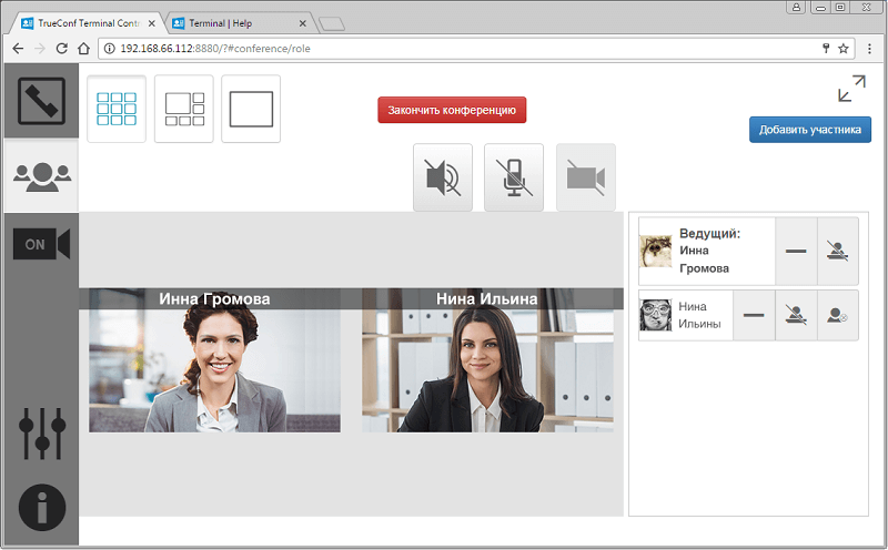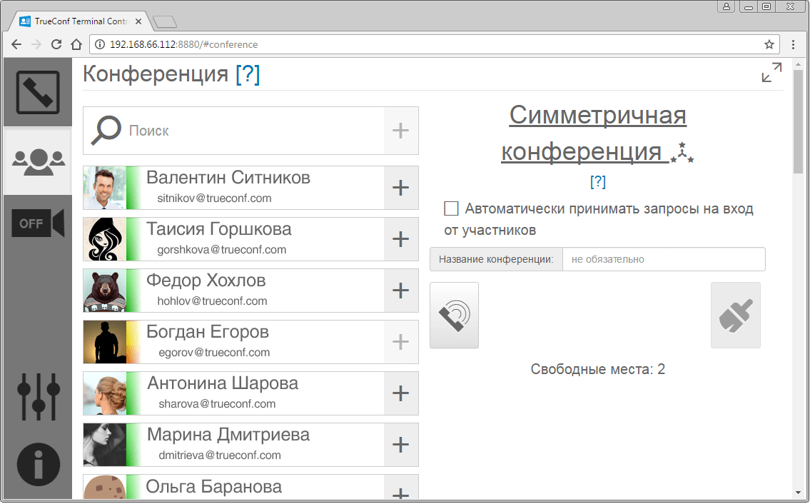 Вид интерфейса управления Trueconf Terminal 2.0: