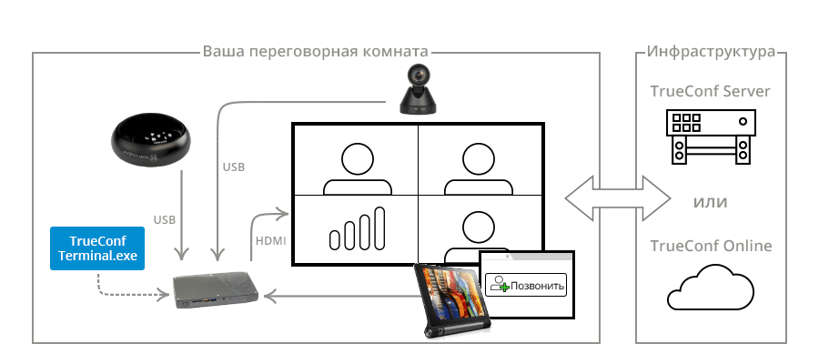 - Программное обеспечение TrueConf Terminal 2.0 Pro;