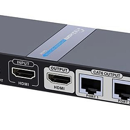 - Распределяет 1 сигнал HDMI на 2 FullHD-дисплея по сетевому кабелю одновременно