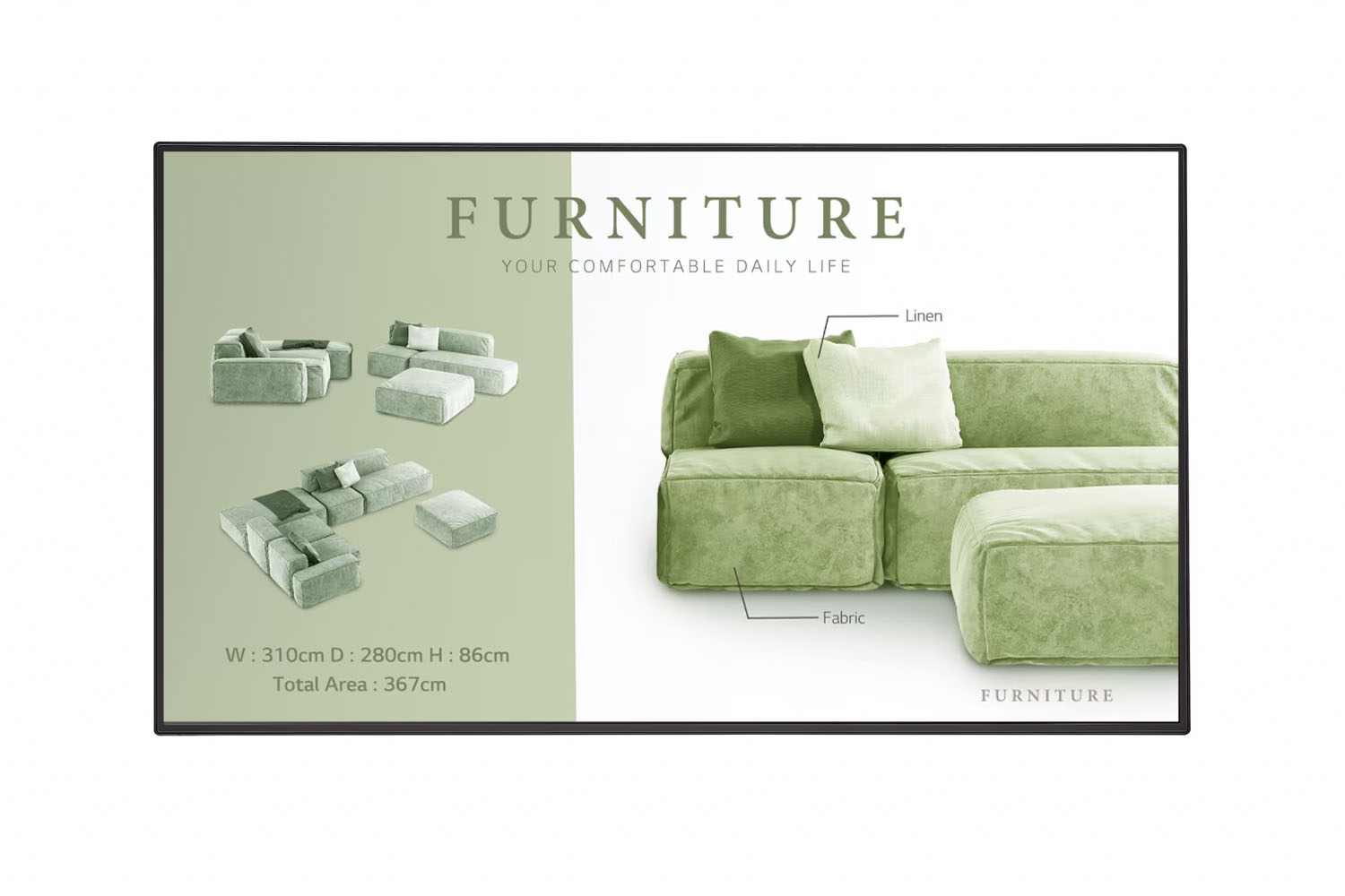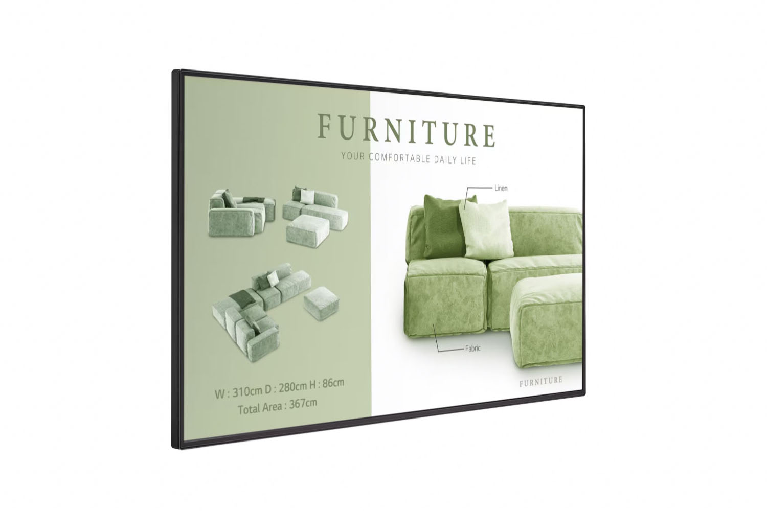 Надежность в режиме 24/7 Разработанный для интенсивной эксплуатации, этот дисплей способен работать круглосуточно. Высокий уровень яркости 500 кд/м² и антибликовое покрытие с 28% матовостью обеспечивают отличную читаемость контента даже в условиях выраженного офисного или торгового освещения. Модель адаптирована как для альбомной, так и для портретной ориентации, что предоставляет широкие возможности для реализации различных сценариев размещения.