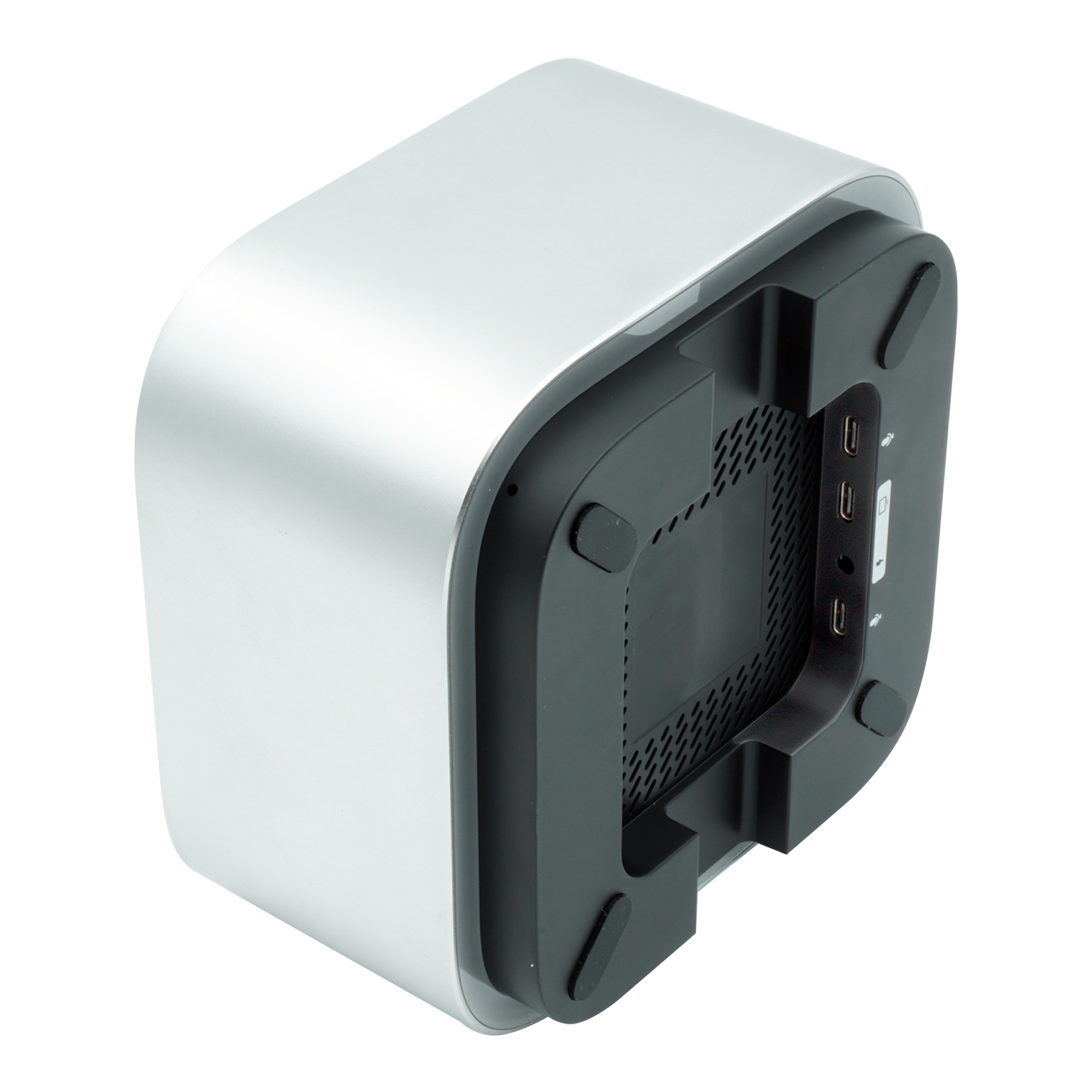 Инновационная система захвата звука. В основе устройства лежит уникальный массив из четырех встроенных всенаправленных микрофонов, дополненный возможностью подключения двух внешних микрофонов через разъемы USB тип С. Такая конфигурация гарантирует всесторонний охват помещения в радиусе 10 метров. Алгоритмы искусственного интеллекта обеспечивают эффективное подавление эха, реверберации и автоматическое шумоподавление, изолируя голос от стационарных и нестационарных помех.