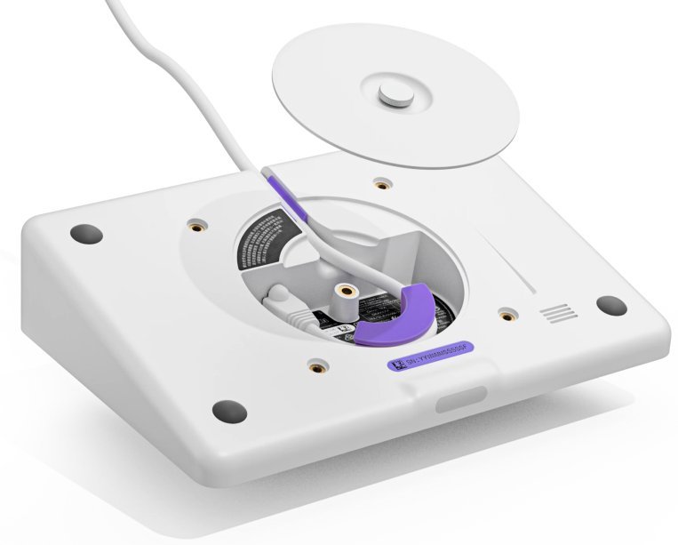 Проложите кабели сзади или через нижнюю крышку: механизмы ослабления натяжения и крепления кабелей обеспечивают надежное соединение.