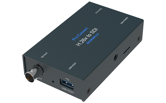 Профессиональное преобразование IP-потоков в SDI-сигнал. Конвертер Magewell Pro Convert for H.26x to SDI представляет собой высокопроизводительное сетевое устройство, предназначенное для интеграции современного оборудования в IP-медиасети. Модель обеспечивает эффективное декодирование H.264 и H.265 видеопотоков с минимальной задержкой, что делает ее эталонным решением для задач потокового вещания, профессионального видеопроизводства и систем конференц-связи.