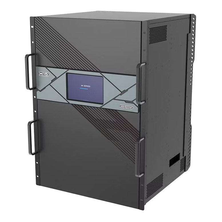 Профессиональный контроллер светодиодного экрана NovaStar H15e представляет собой высокопроизводительное модульное устройство, предназначенное для построения масштабных систем визуализации. Данная модель выполнена в форм-факторе 15U и предлагает исключительную гибкость конфигурации благодаря возможности установки различных входных и выходных плат. Решение оптимизировано для работы с проектами, требующими высокой плотности пикселей и безупречного качества передачи данных.