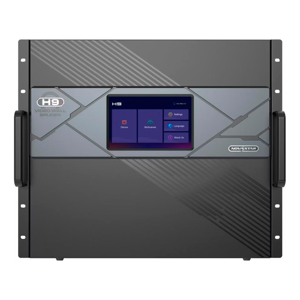 Профессиональный контроллер для LED-стен. Видеоконтроллер Novastar H9 представляет собой мощное модульное решение, разработанное для эксплуатации светодиодных экранов высокой четкости. Устройство выполнено в надежном корпусе формата 9U, обеспечивающем эффективное размещение необходимых компонентов для масштабных проектов отображения контента.