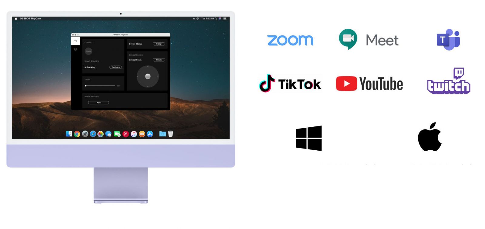 OBSBOT Meet 4K передает потоковое видео Ultra HD 4K со скоростью до 30 кадров в секунду или в разрешении 1080p со скоростью до 60 кадров. Камера также может поворачиваться на 90° для перехода в портретный с соотношением сторон 9:16. В камере стоит сенсор CMOS 1/2,8″, оснащена 4-кратным цифровым зумом, обладает возможностью съемки в HDR для улучшения качества изображения и двумя всенаправленных микрофона для трансляции звука. Вебкамера Meet 4K легко крепится к экрану за счет магнитного крепления (в комплекте поставки), а также ее можно установить на штатив 1/4 «-20. OBSBOT Meet 4K совместима с Windows и Mac, подключается к компьютеру через порта USB