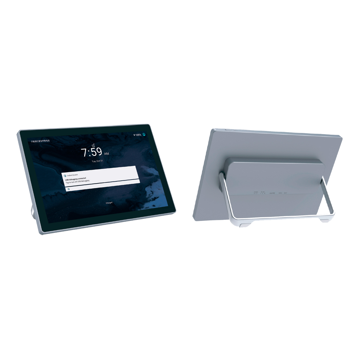 Корпус устройства выполнен с применением алюминиевых сплавов, что придает ему прочность и эстетичный внешний вид в цвете Apple Grey. Передняя панель представляет собой качественный сенсорный экран с чёрной рамкой. При компактных размерах 245,4x164x27 мм устройство весит менее килограмма, что обеспечивает устойчивость на столе и удобство при пользовании. Система стабильно работает в температурном диапазоне от 0°C до 40°C при соблюдении условий влажности.