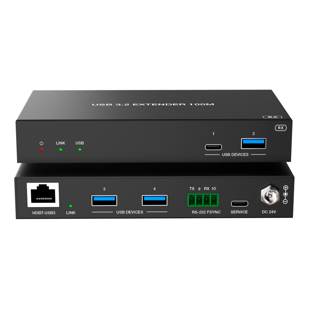 | Приемник | Вход: 1× HDBT-USB3 [RJ45 разъем, 24V PoC] Выходы: 3× USB-A DEVICE [USB Type A, 9-контактный, гнездо] 1× USB-C DEVICE [USB Type C, 24-контактный, гнездо] Управление: 1× RS-232 [3-контактный разъем Phoenix 3.5мм] 1× FSYNC [1-контактный разъем Phoenix 3.5мм] 1× SERVICE [USB Type C, порт обновления прошивки] |