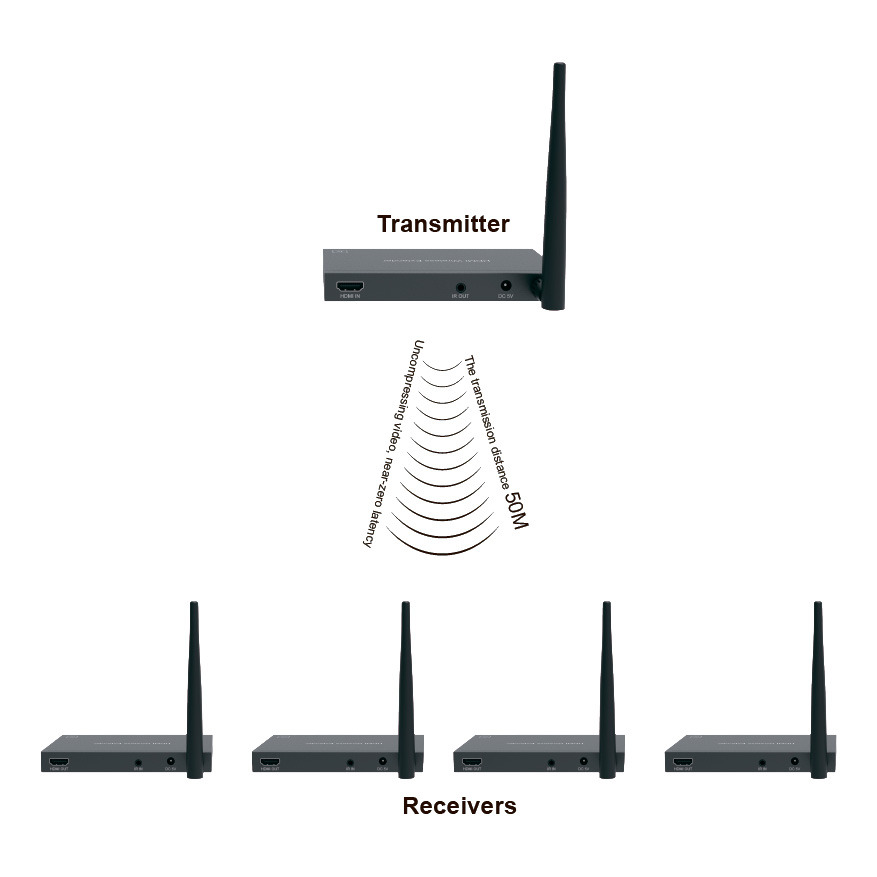 Устройство поддерживает современные стандарты подключения, включая HDMI 1.4b и HDCP 1.4, что гарантирует стабильно высокое качество картинки при разрешениях вплоть до 1920x1200 (60 Гц). Передатчик и приемник обеспечивают надежную работу на расстоянии до 50 метров в условиях прямой видимости, сохраняя при этом минимальную задержку сигнала (менее 150 мс), что критически важно для динамичных презентаций.