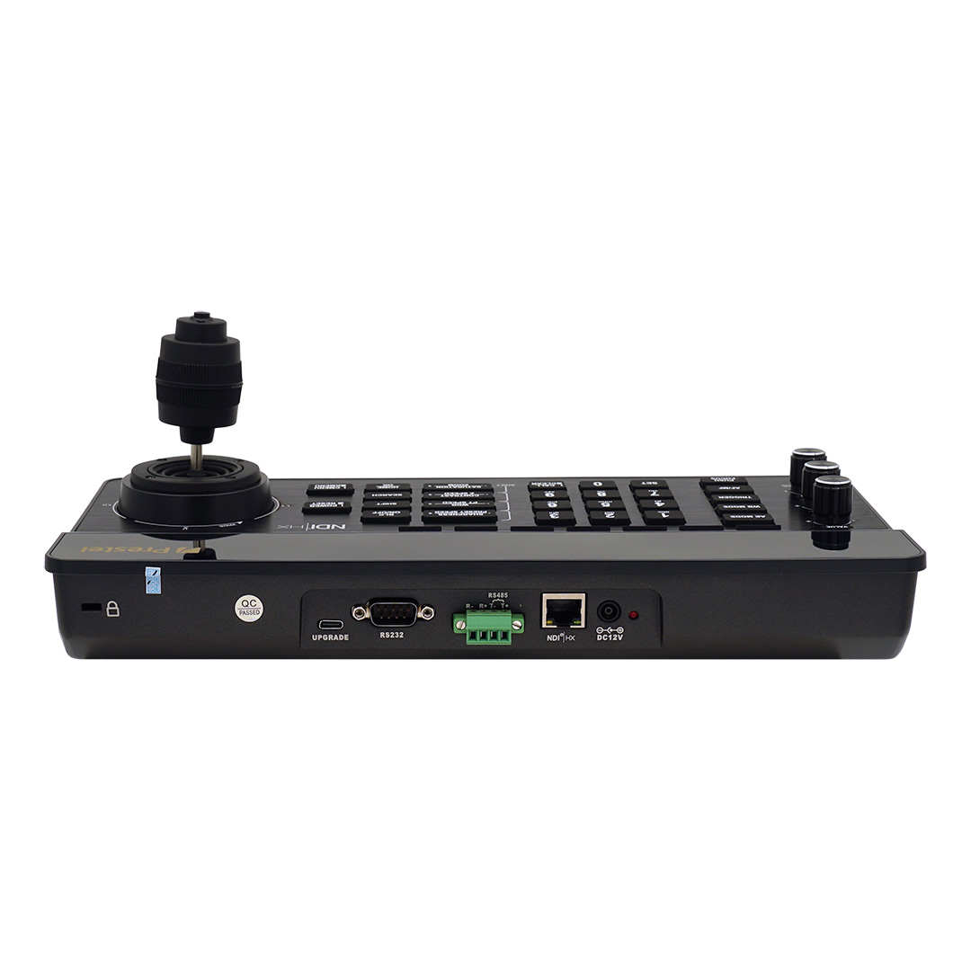 Передовые возможности управления делают эту модель незаменимым инструментом. Благодаря поддержке широкого спектра протоколов, включая NDI|HX, VISCA, VISCA через IP, ONVIF и Pelco P/D, пульт позволяет управлять до 7 камерами одновременно. Вы можете использовать одну клавиатуру для всей системы или организовать мультипультовое управление, что значительно расширяет масштаб инсталляций. Интеграция с NDI обеспечивает высокое качество сигнала и упрощает процесс подключения по сети Ethernet.