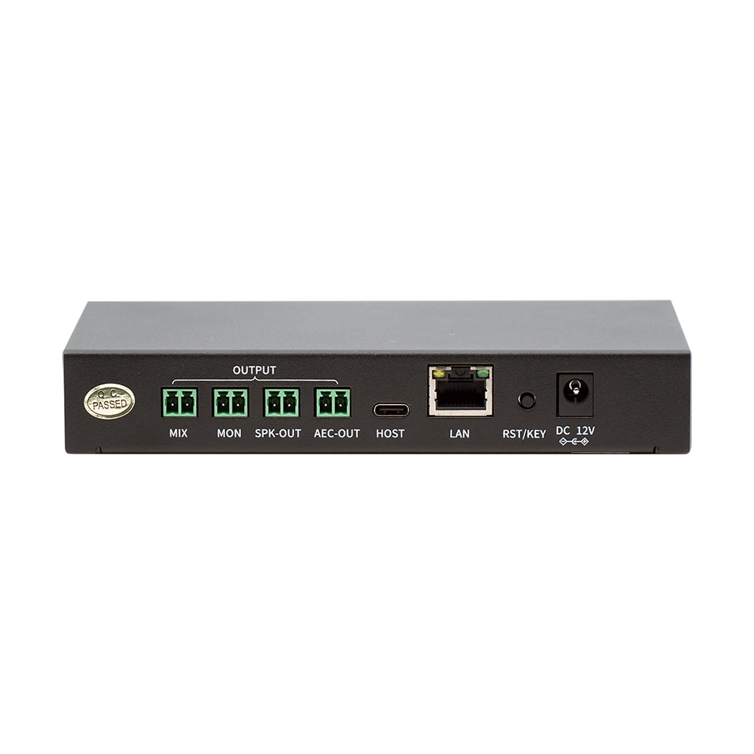 Гибкость коммутации и интеграции обеспечивается широким выбором интерфейсов. Устройство оснащено 4-канальными аудиовходами и выходами типа Phoenix, что позволяет интегрировать локальное аудиооборудование, беспроводные системы и компьютеры. Поддержка стандарта питания POE (IEEE802.3 AT) упрощает установку, избавляя от необходимости прокладывать дополнительные линии питания для активных микрофонных компонентов. Интерфейс USB позволяет удобно использовать устройство в качестве хоста для систем видеоконференцсвязи.