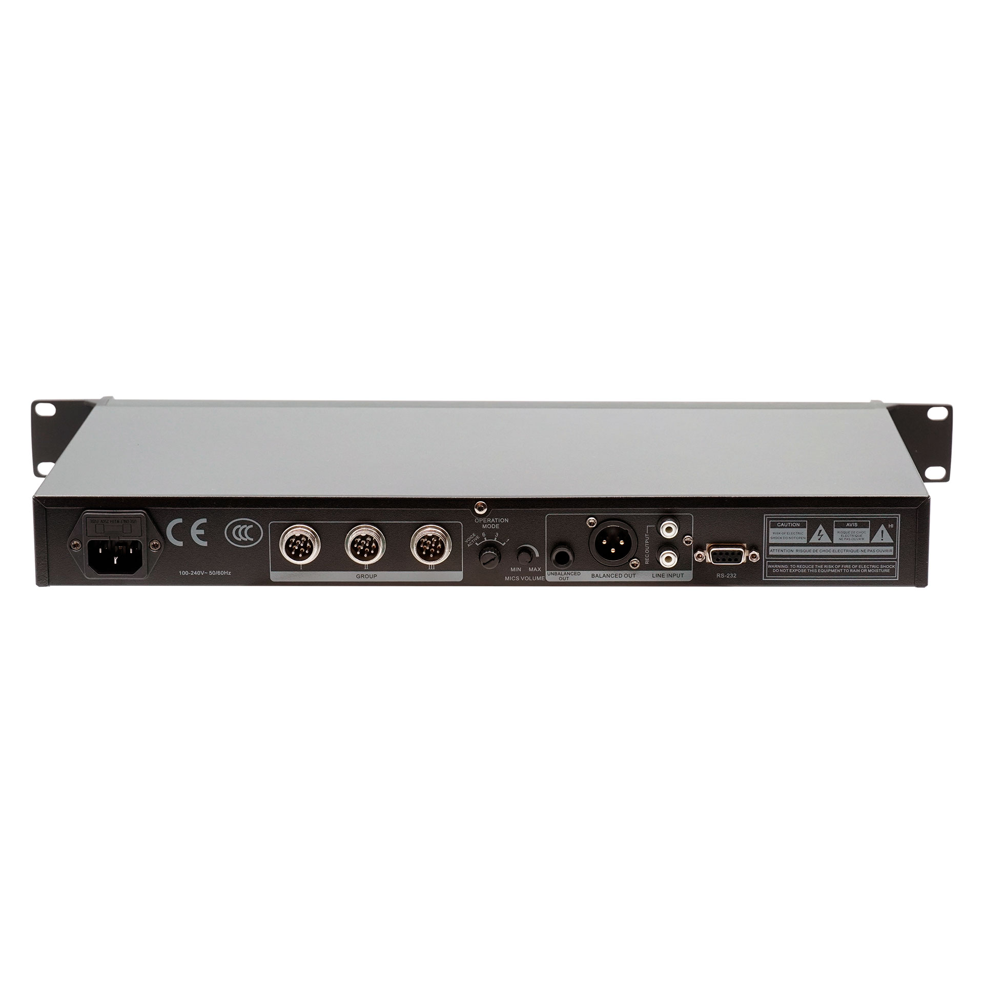 Устройство выполнено в компактном дизайне с возможностью размещения как на столе, так и в стандартной 19-дюймовой серверной стойке. На лицевой панели и корпусе предусмотрены интуитивно понятные интерфейсные порты, обеспечивающие простое проводное подключение оборудования. Благодаря поддержке работы до 60 пультов, устройство является масштабируемым решением для конференц-залов любого типа. Поддержка мультиязычного меню (английский и китайский языки) упрощает настройку и конфигурирование системы в соответствии с локальными задачами пользователя.