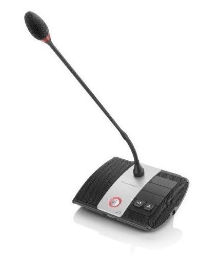 Беспроводной пульт председателя гарантирует отличную разборчивость речи, сменный аккумулятор обеспечивает бесперебойную работу пульта около 20 часов. Кнопки управления выполняют функции вкл/выкл микрофона, назначения приоритета и очереди запроса на выступление, отключение всех запросов на выступление. Пульт оборудован высокопроизводительным широкополосным парным громкоговорителем. Имеется возможность использовать разные микрофоны с держателями «гусиная шея» различной длины.