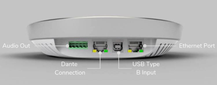 Hub предлагает множество вариантов подключения: Dante, USB Type-B, Ethernet, VoIP и клеммные колодки.