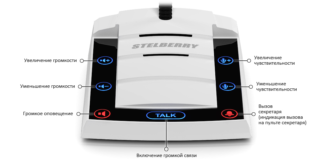 Легкое, не утомляющее глаза свечение микрофона индицирует режим работы переговорного устройства директор-секретарь. Все очень просто - когда микрофон включен, он светится.