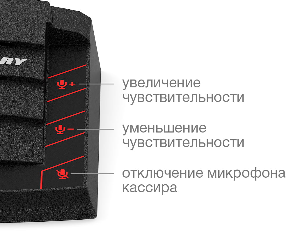 Пульт кассира оснащён регулировкой чувствительности микрофона.