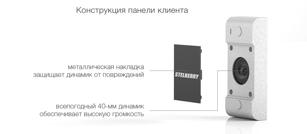 При использовании панели клиента на открытом пространстве, дождевая вода и растаявший снег могут затекать в отверстие микрофона, образуя водяную пробку, что приводит к временной глухоте микрофона. А при длительной эксплуатации панели в таких условиях на поверхности микрофона может образоваться жесткая плёнка из грязи растворённой в дождевой воде или растаявшем снеге, что приведёт к постоянной глухоте микрофона панели. Для защиты микрофона панели от затекания воды при использовании панели на открытом пространстве, выпускается защитный козырёк S-005, который приобретается отдельно у любого из дистрибьюторов STELBERRY.