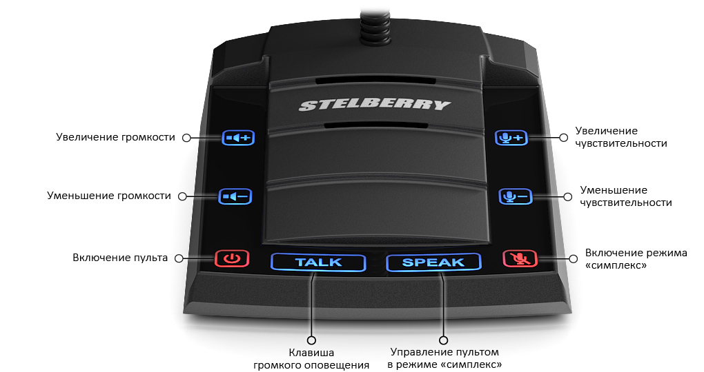 При нажатии и удержании кнопки «TALK», происходит включение функции громкого оповещения, а связь с панелью клиента автоматически прекращается, на время подачи громкого объявления. Интегрированная функция громкого оповещения позволяет успешно использовать переговорное устройство для АЗС, в качестве базовой системы, позволяющей решать большинство задач по оповещению и общению с клиентами. Модель STELBERRY S-520 совместима со всеми трансляционными усилителями, представленными на рынке систем громкого оповещения.