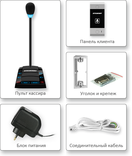Универсальное угловое крепление, идущее в комплекте STELBERRY S-520, позволяет удобно расположить вызывную панель в любом месте кассового окна.