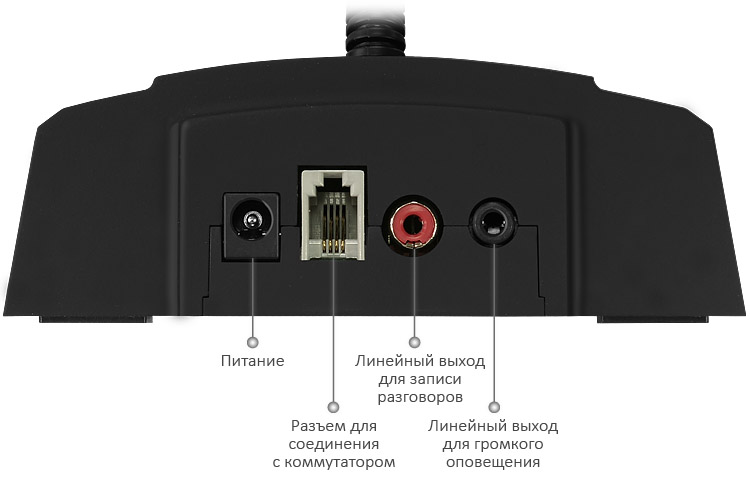 Назначение разъемов пульта селекторной связи STELBERRY S-760
