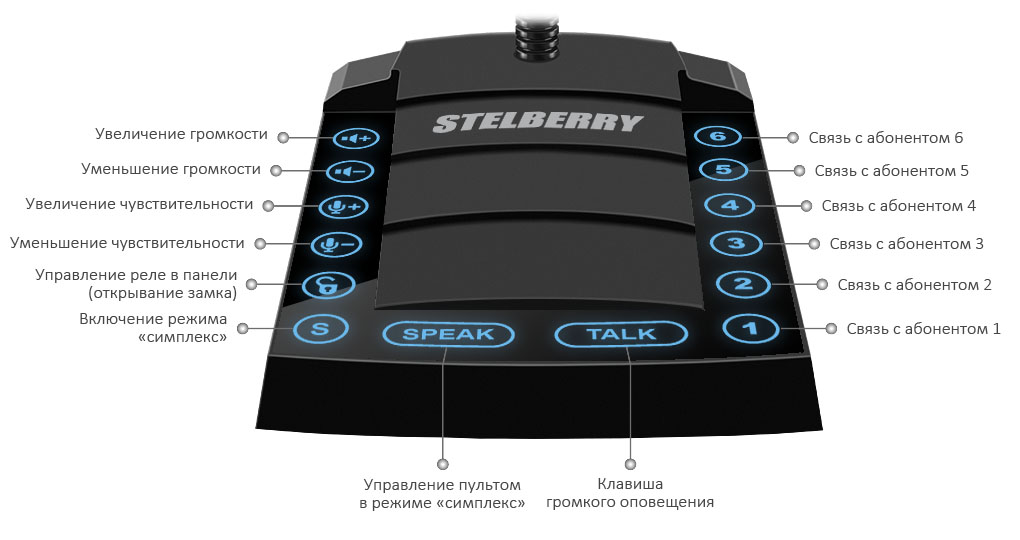 Кнопки управления пульта селекторной связи на 6 абонентов STELBERRY S-760