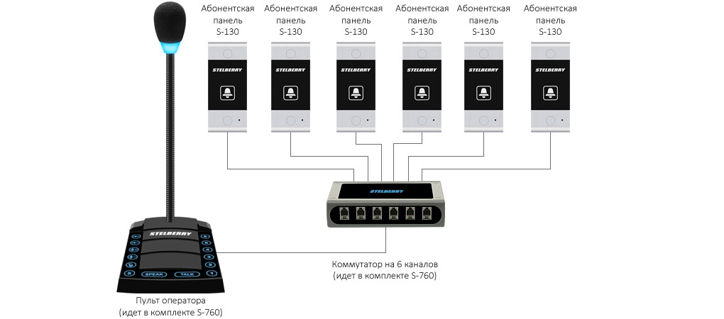 Схема подключения оборудования диспетчерской связи STELBERRY S-760