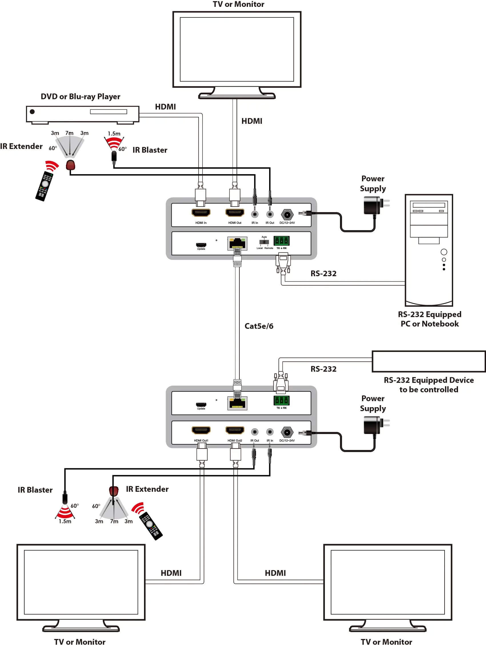 Управляйте источником со стороны дисплея / приемника или наоборот с помощью двунаправленного ИК-порта и передавайте команды RS-232 с компьютера на ваш источник и дисплей с разъемом Phoenix. Он также поддерживает множество аудиоформатов HD, включая Dolby Digital, Dolby TrueHD, DTS 5.1 и PCM.