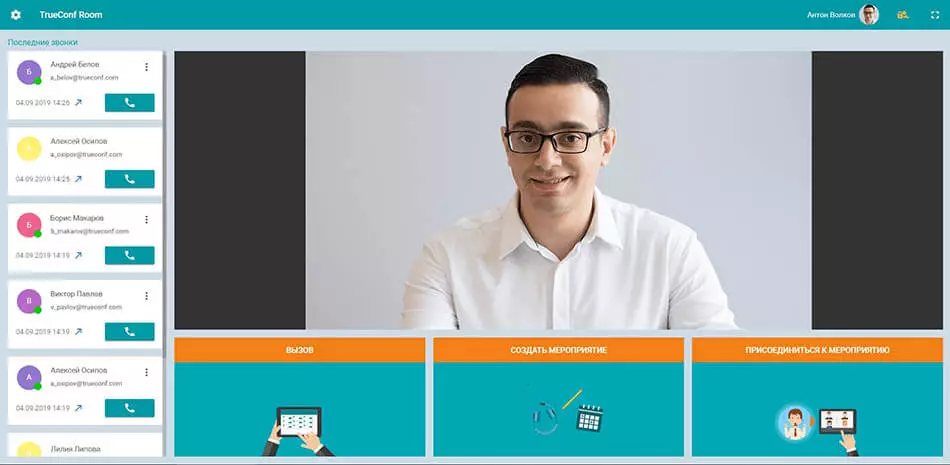 Подключите TrueConf Room к облачному сервису TrueConf Online и вы получите переговорную комнату с возможностью проведения групповых видеоконференций. Если вам требуется интеграция с имеющимися аппаратными терминалами, АТС, Active Directory или телефонией, подключите терминал к серверу видеоконференцсвязи TrueConf Server.