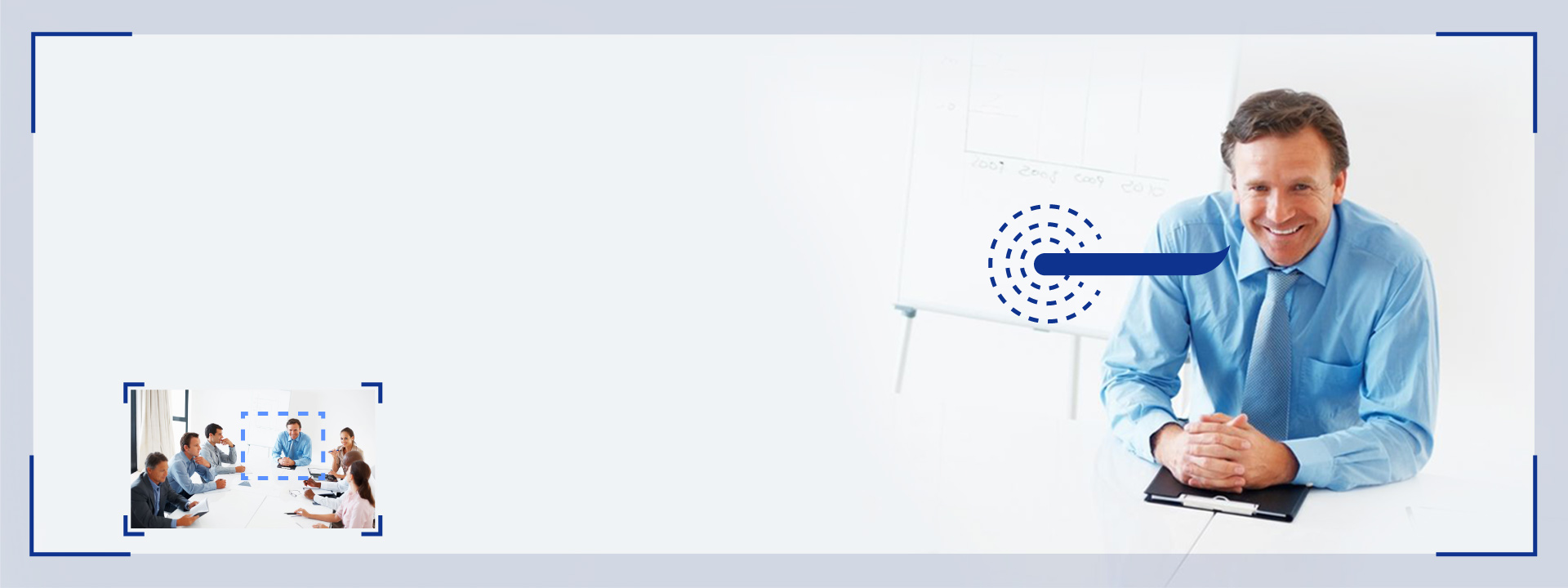 Видеобар TrueConf Video 10 имеет встроенный интеллектуальный алгоритм анализа положения выступающего, автоматическое кадрирование участников, автоматическое отслеживание выступающих, чтобы докладчик всегда четко попадал в кадр.