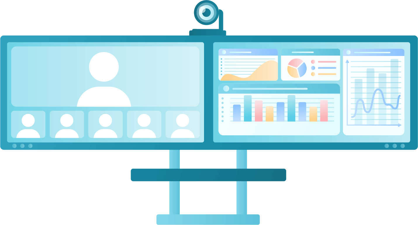 Используйте режим работы с двумя экранами. Делитесь контентом и управляйте видеоконференцией в удобном формате.