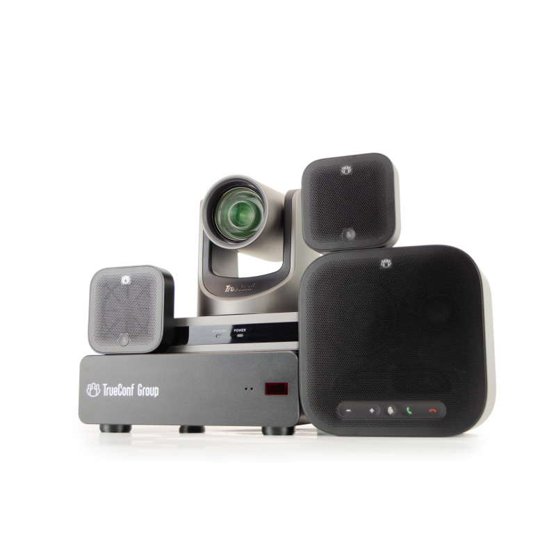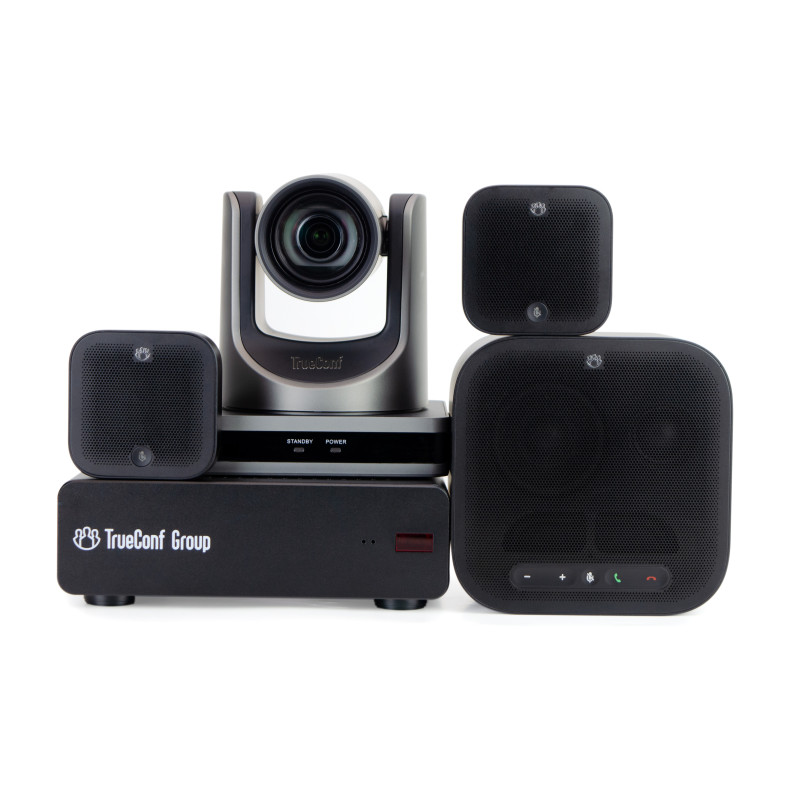 Данный комплект включает эксклюзивную версию спикерфона TrueConf Audio Trio в черном цвете, доступную только в составе наших ВКС-терминалов TrueConf Group, а также PTZ-камеру TrueConf 2512U3H POE доступную только в составе наших ВКС-терминалов TrueConf Group и TrueConf Room. Аппаратный ВКС-терминал для средних и больших переговорных комнат с поддержкой протоколов SIP/H.323. Оснащён встроенным MCU, а модульная комплектация благодаря своей гибкости позволяет использовать любую AV-периферию, что может обеспечить адаптацию комплекта под любые условия.