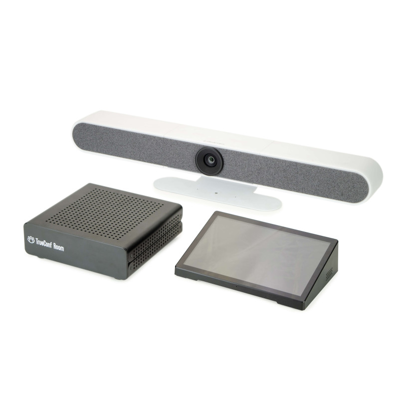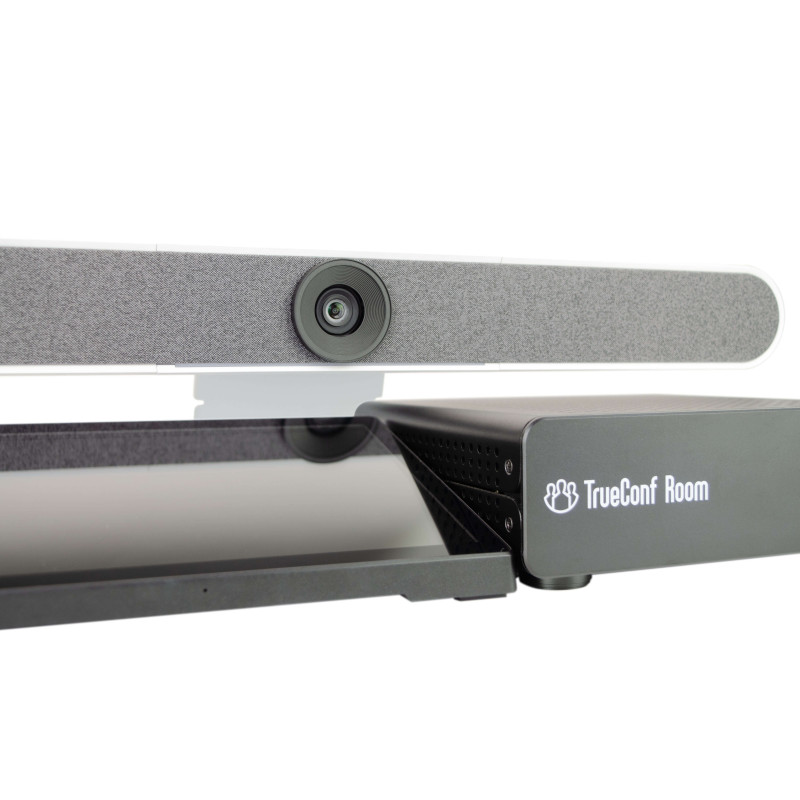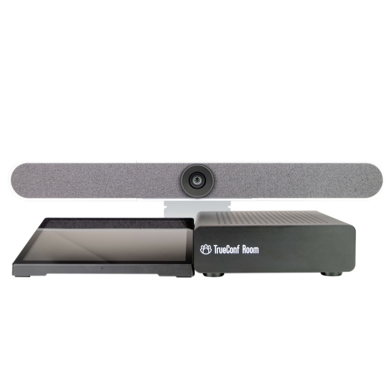 Готовое решение для оснащения переговорной комнаты на основе TrueConf Room обеспечит качественное и комфортное общение участников конференции. Комплект состоит из видеобара, мини-ПК, настольного планшета с поддержкой функции PoE (технология одновременной зарядки и передачи информации по одному и тому же кабелю) и предустановленного программного обеспечения TrueConf Room.