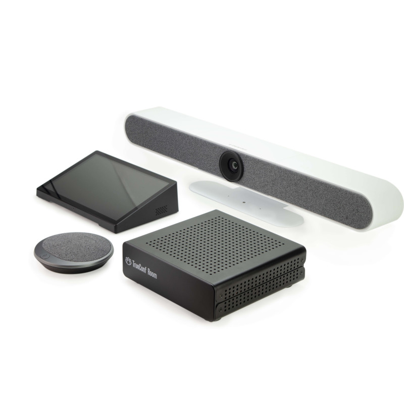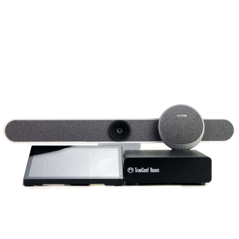 Готовое решение для оснащения переговорной комнаты на основе TrueConf Room обеспечит качественное и комфортное общение участников конференции. Комплект состоит из видеобара, мини-ПК, дополнительного микрофона для видеобара, настольного планшета с поддержкой функции PoE (технология одновременной зарядки и передачи информации по одному и тому же кабелю) и предустановленного программного обеспечения TrueConf Room.