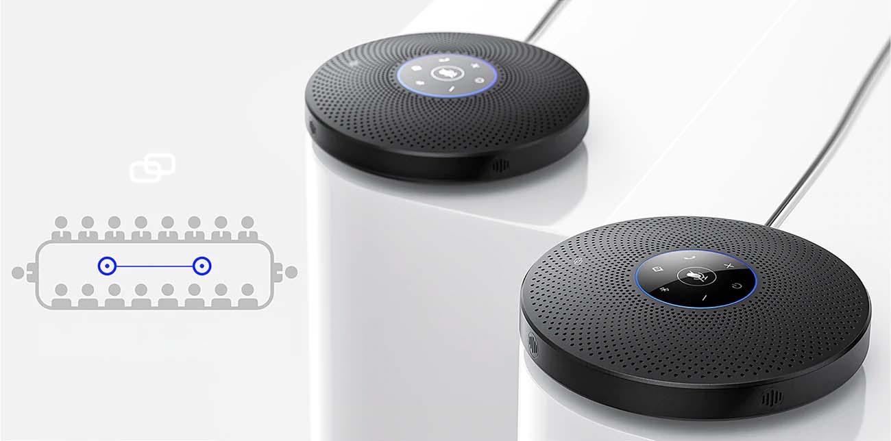 Соедините два разъема SP40 при помощи кабеля, чтобы расширить зону покрытия и создать эффективное пространство для конференций, обеспечивая возможность проведения встреч с участием до 30 человек.