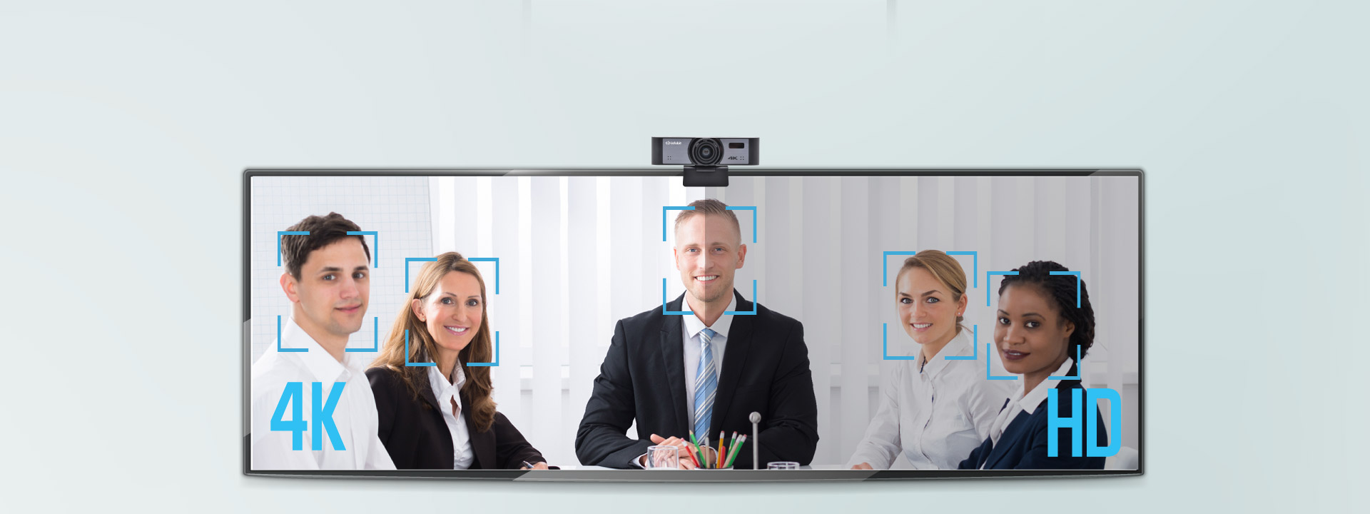 Усовершенствованный алгоритм используется для автоматической регулировки угла обзора, для центрирования фокуса на человеке или группе людей, избегая ручной настройки камеры.