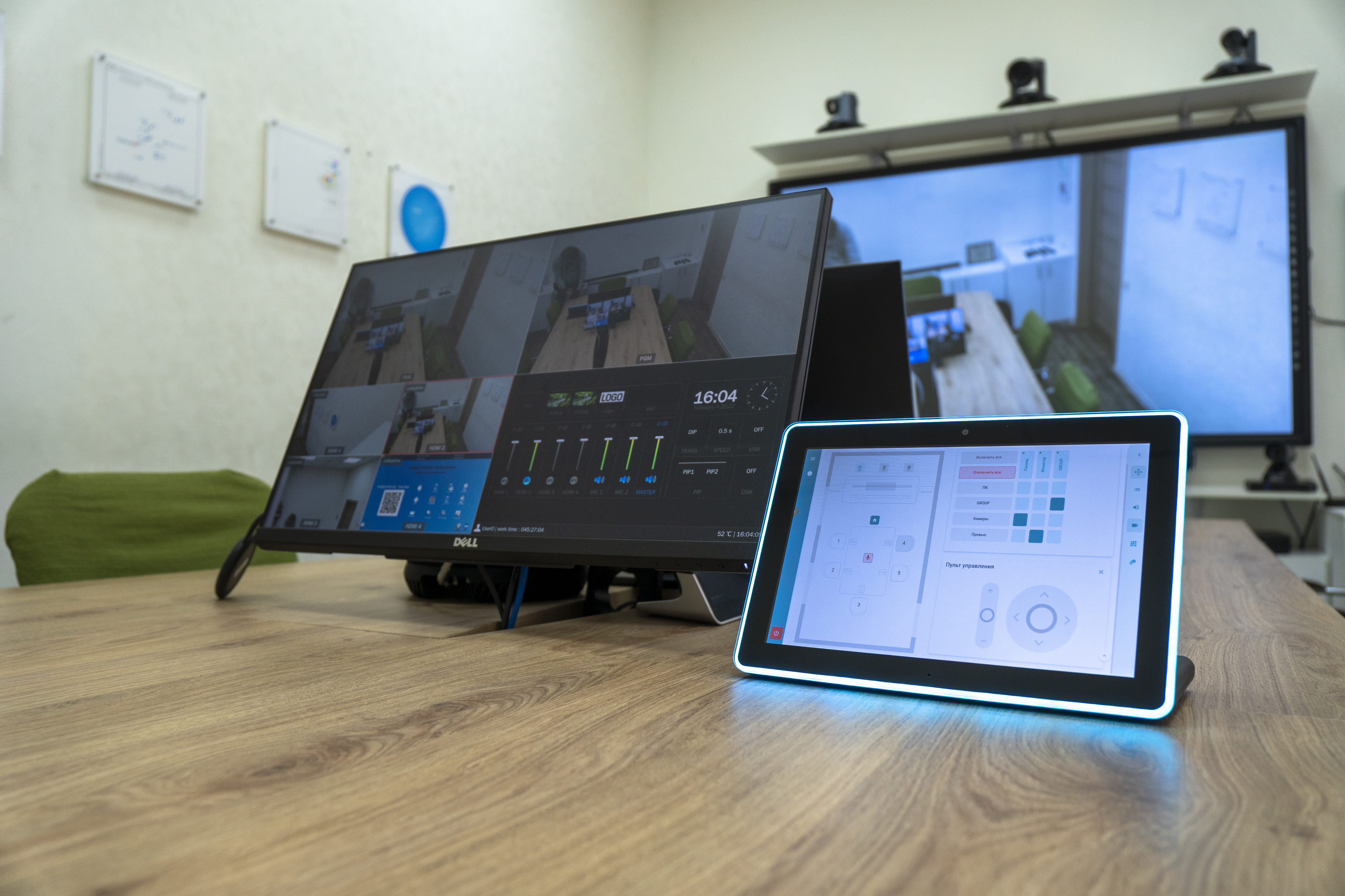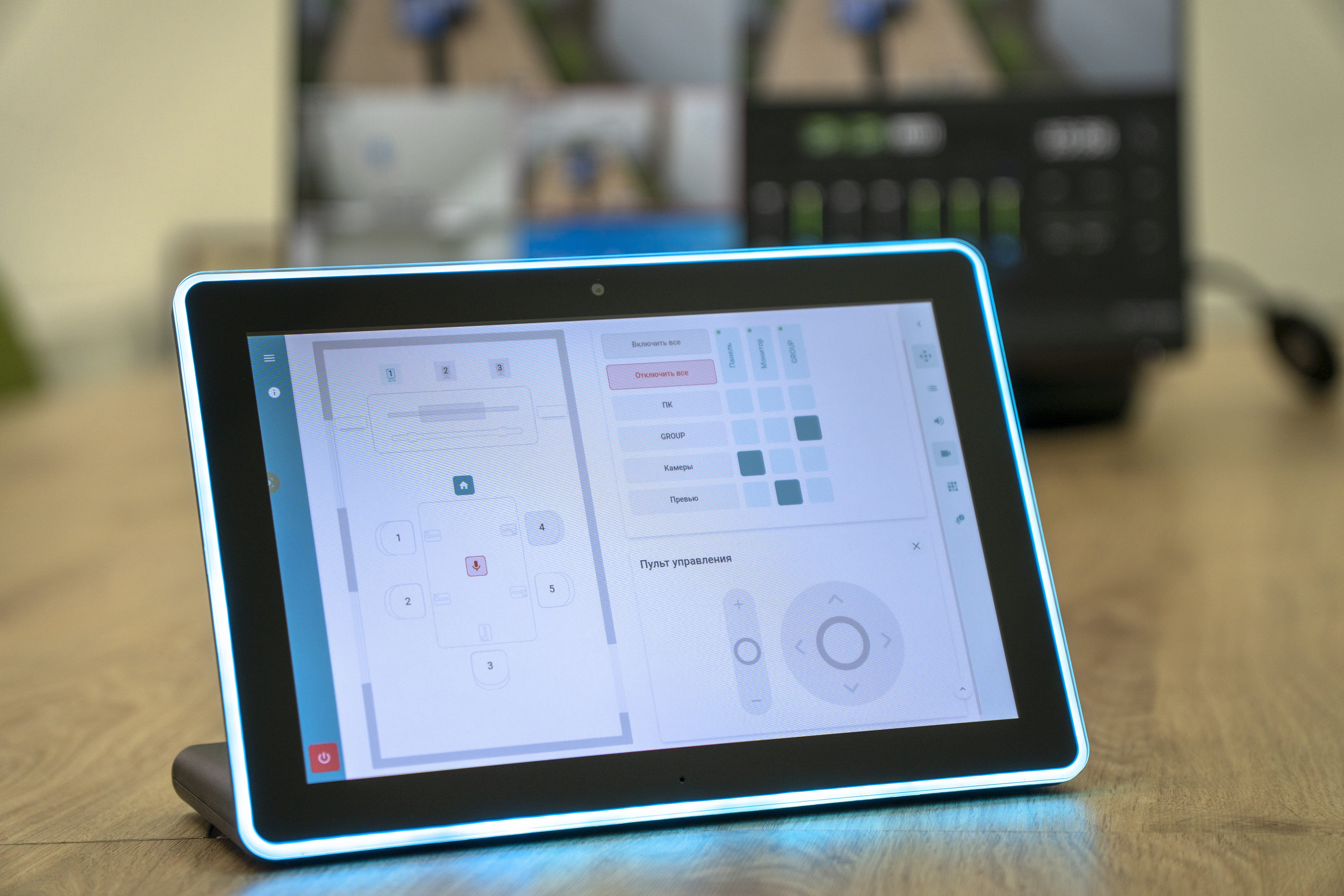 Для работы с системой используется сенсорный планшет с предустановленной на него панелью управления. Он размещается на столе в переговорной комнате или в другом месте, где находится оператор. При необходимости таких планшетов может быть несколько, размещённых в разных местах конференц-зала.
